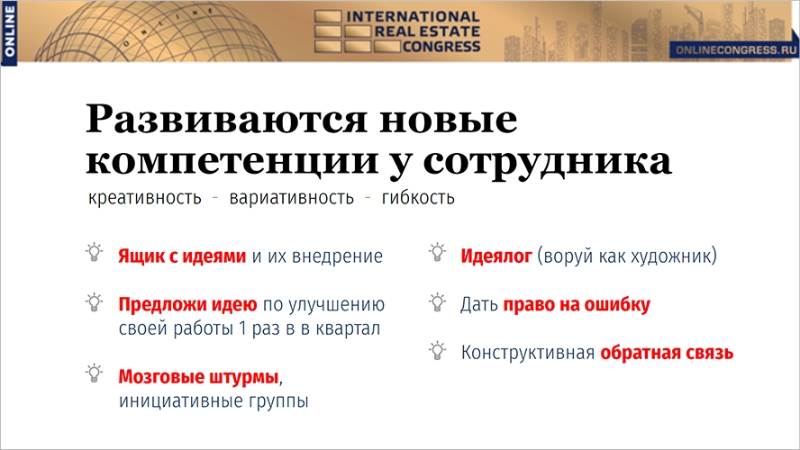 «Очень понравился блок по презентациям, проводимый Романом Куковякиным. Кажется, что в варианте: теория + разбор ошибок + преврати свою презентацию "в конфетку" он может хорошо "зайти". Особенно тем кто часто делает презентации. Ооооочень понравилось как в онлайн-режиме Роман облагораживал слайды. Причем полезно было смотреть не только за тем как меняется слайд, но и работа с инструментом. И это в стандартной гугл презентации, а не на каком-то специализированном инструменте.»